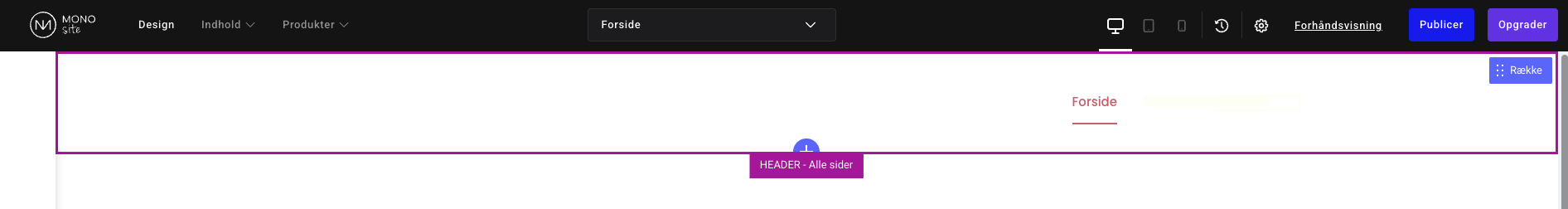 Du kan starte opgradering ved blot at klikke på knappen "opgrader" i højre hjørne, eller opgradere direkte efter publicering af din hjemmeside og starte processen ved at vælge "Få dit eget domæne".