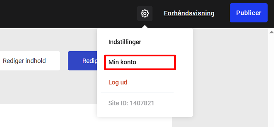 For at tilgå Account centeret tryk på tandhjulet oppe i højre hjørne og så på: Min konto