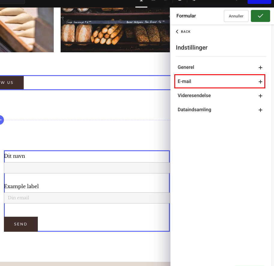 Tryk på det grønne flueben for at gemme. Du har nu indstillet din kontaktformular til at sende dig en e-mail, så snart formularen udfyldes.